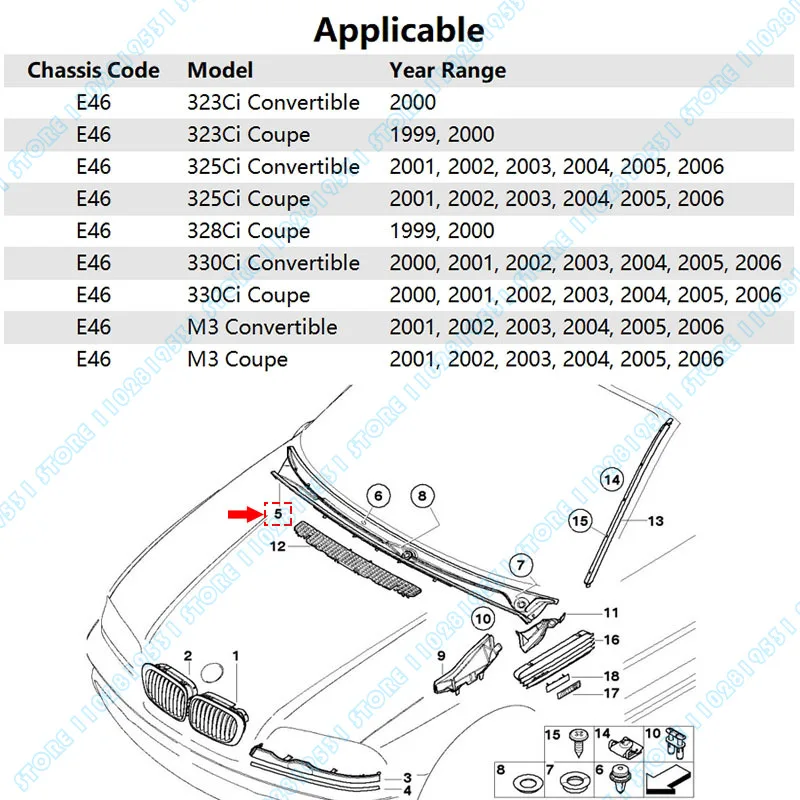 BMW E46 2 Door Coupe Windshield Wiper Cowl. RHD 51718232896